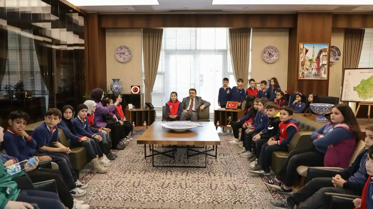 Kütahya Valisi Musa Işın, Evliya Çelebi İlkokulu 3. sınıf öğrencilerini makamında ağırladı.