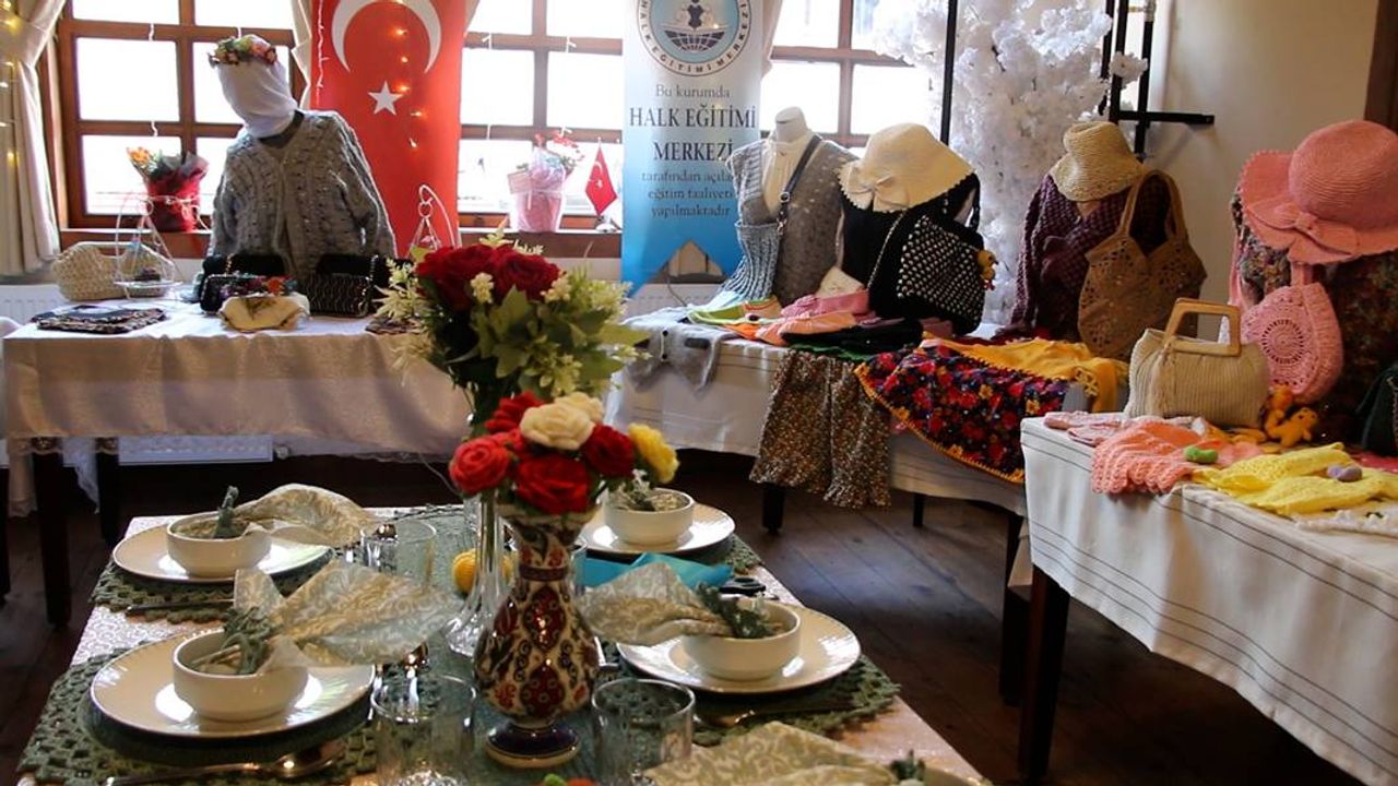Kütahya’da oyuncak, çanta, iğne oyası gibi ürünlerin üretildiği kursun el hüneri eserleri beğeniye sunuldu.