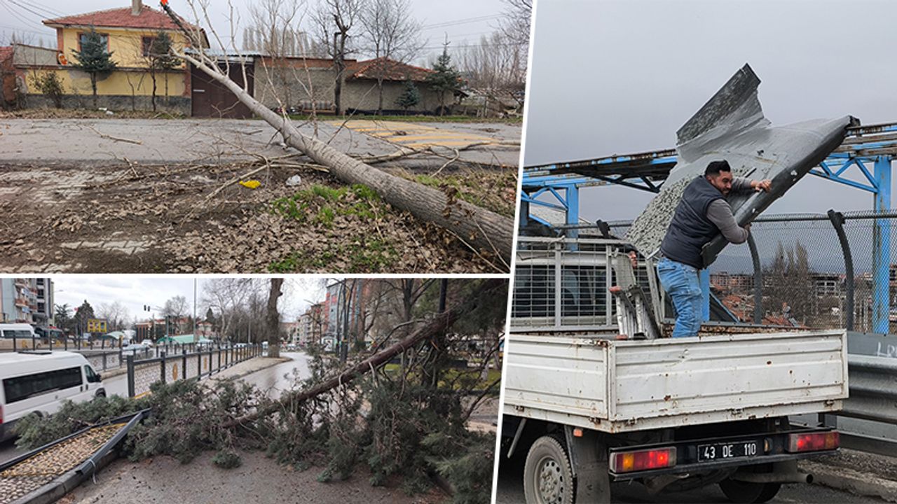 Kütahya'da şiddetli rüzgar, kent merkezinde ve ilçelerde hayatı olumsuz etkiledi.