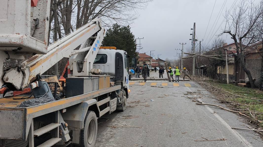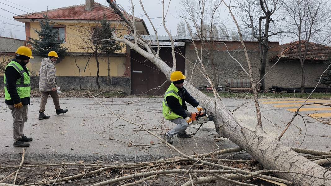 Kara yoluna devrilen ağaçlar nedeniyle trafikte aksamalar meydana gelirken, Kütahya Belediyesi ekipleri devrilen ağaçları yoldan kaldırmak için çalışma yaptı.