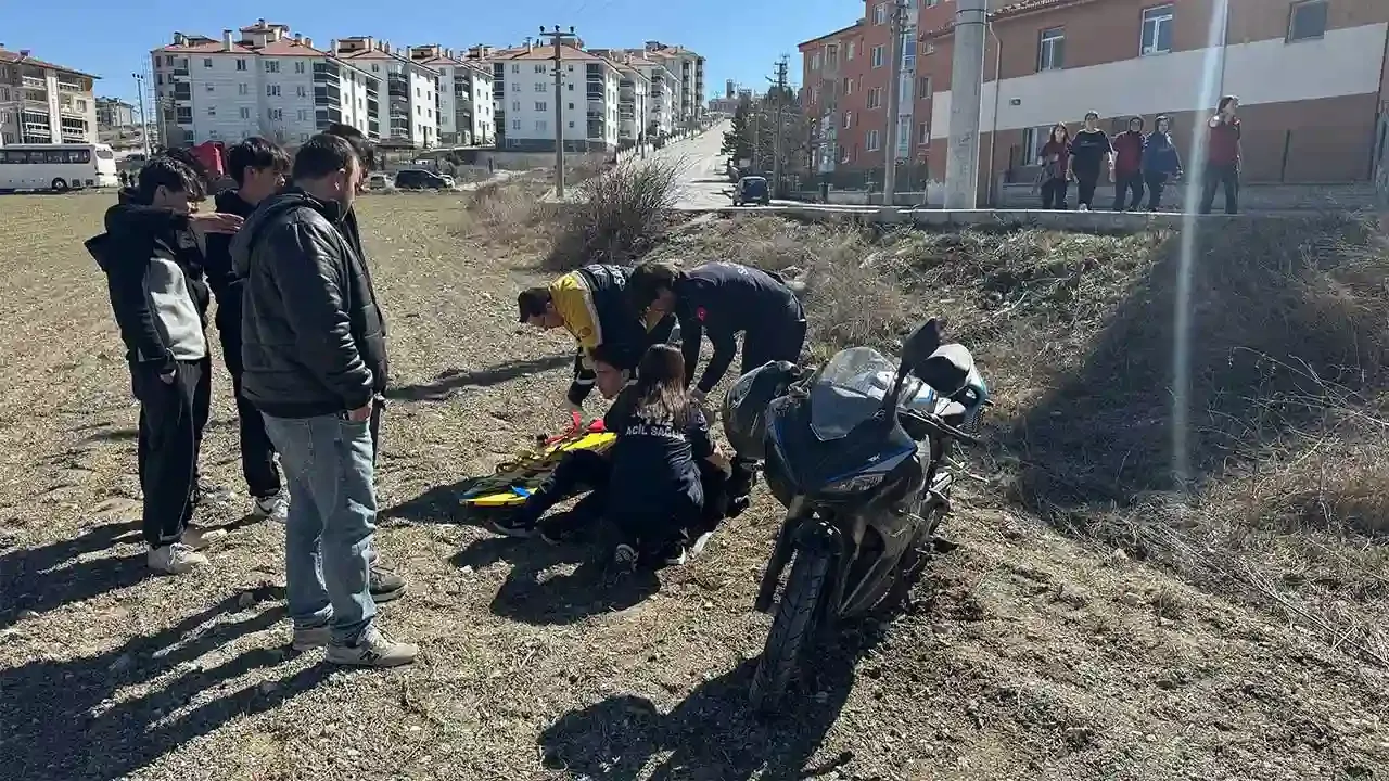 Abdülhamid Han Anadolu Lisesi öğrencisi 17 yaşındaki Ahmet Hakan Akartürk’ün kullandığı 43 AGN 612 plakalı motosiklet, Zafertepe Mahallesi Zafer Caddesi’ndeki rampadan aşağıya inerken kontrolden çıkarak yol kenarındaki tarlaya savruldu.