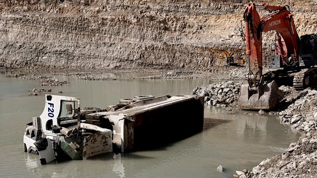 Kütahya'nın Hisarcık ilçesinde, bor madeni sahasında su birikintisine devrilen kamyonun genç sürücüsü hayatını kaybetti.