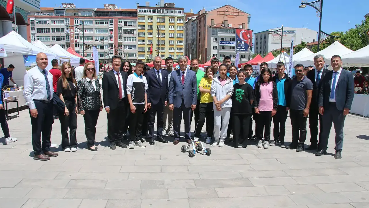 Etkinlik alanını ziyaret eden İl Milli Eğitim Müdürü Mustafa Yılmaz, hem meslek lisesi hem ortaokul öğrencileri ile sohbet etti.