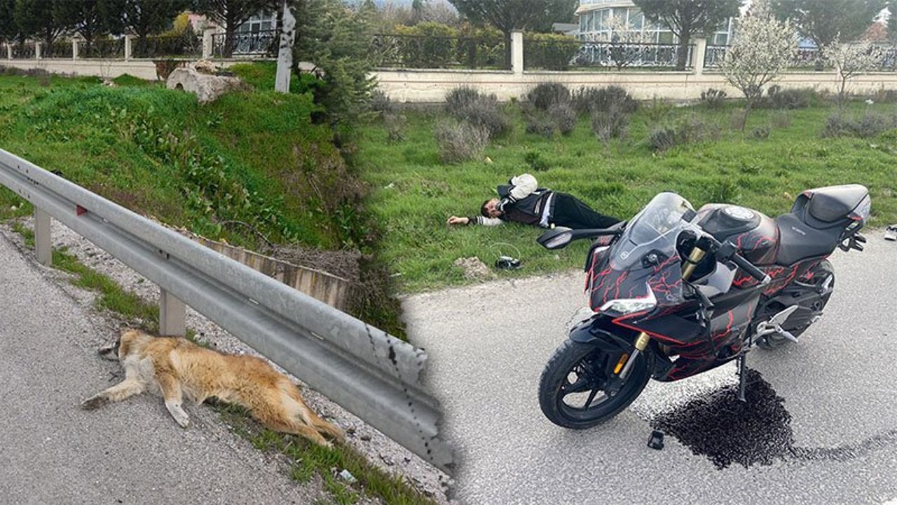 Motosikletin çarptığı köpek ise olay yerinde telef oldu.
