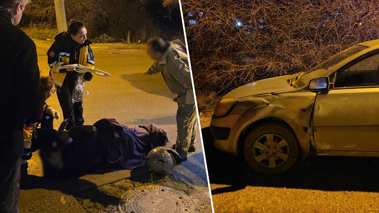 Çarpmanın etkisiyle motosiklet devrilirken, sürücü yaralandı.