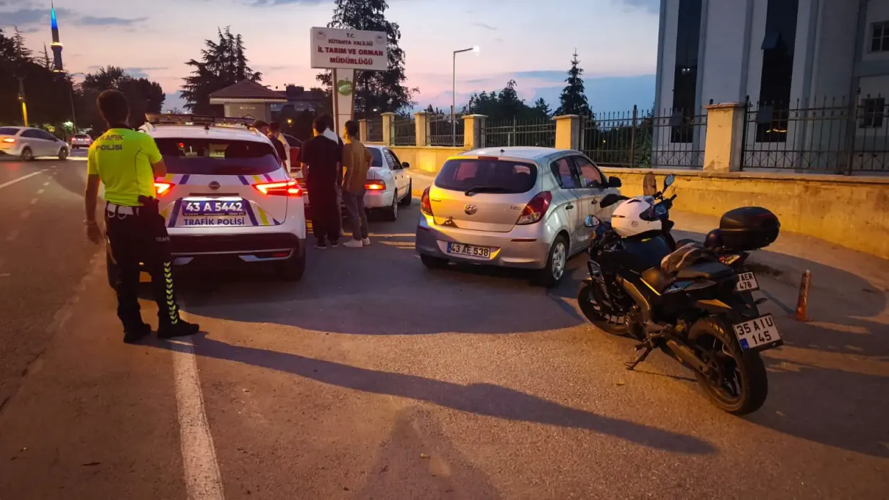 Kütahya’da motosikletin otomobile çarpmasıyla meydana gelen trafik kazasında, araçlarda maddi hasar oluştu.