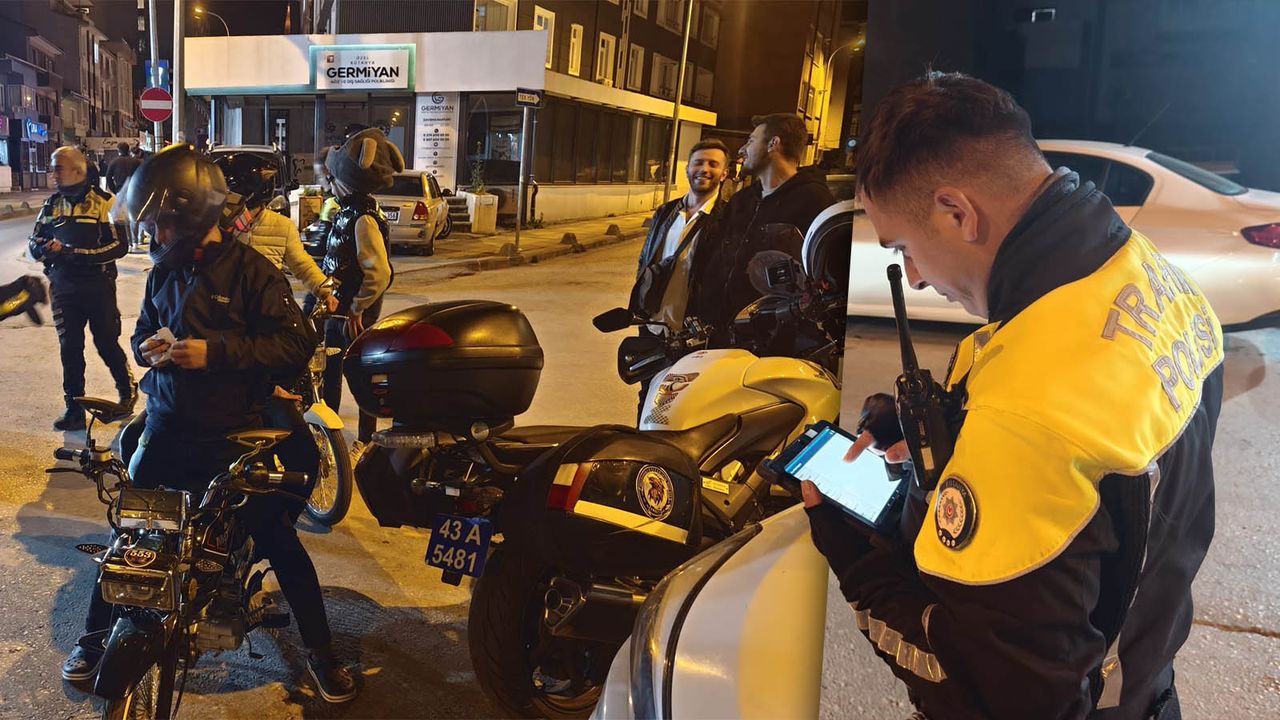 Kurala uymayan motosiklet sürücülerinin tespit edildiği denetimde, kurala uymayan sürücülere idari para cezası uygulandı.
