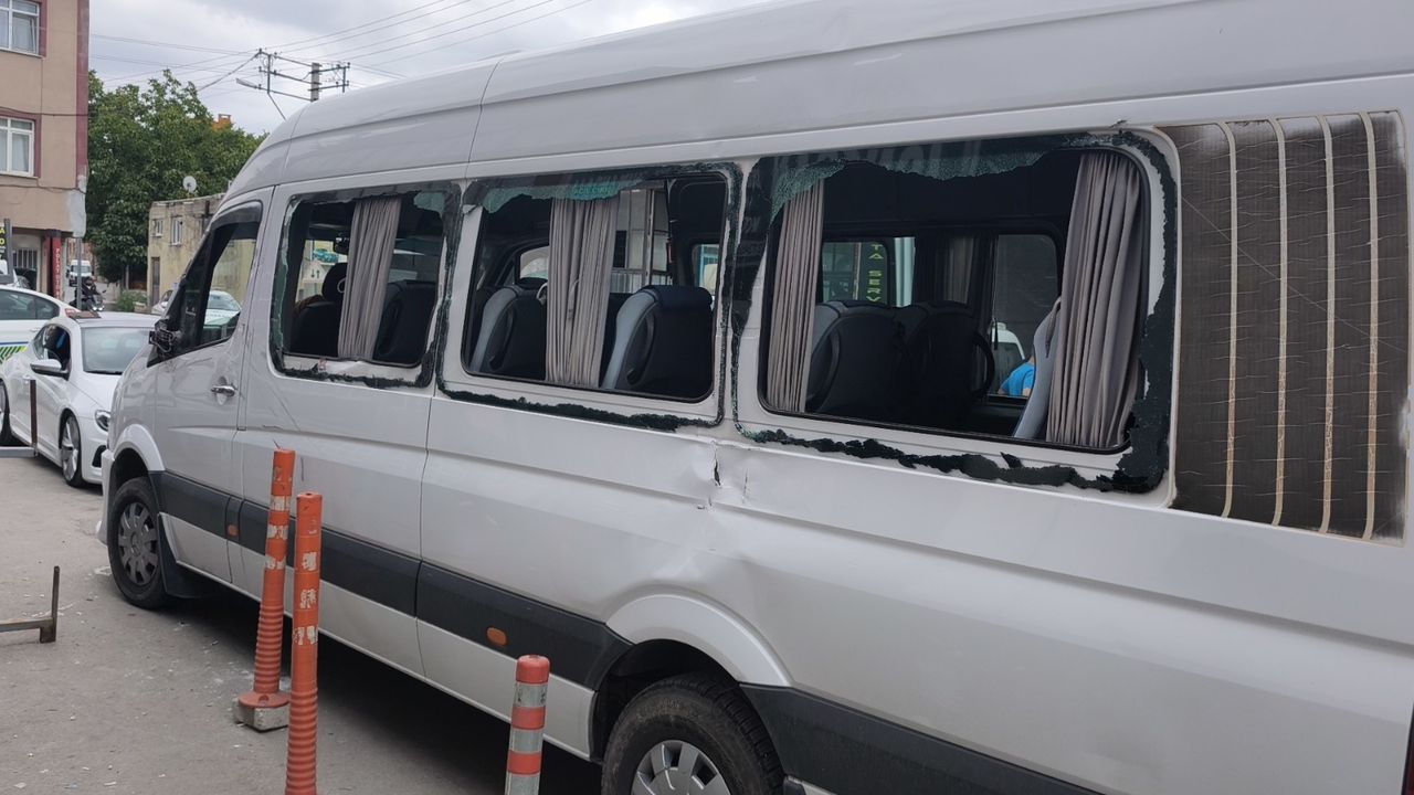 Çarpışmanın etkisiyle savrulan öğrenci servisi yol kenarındaki çöp konteynerine ve park halindeki araca çarptıktan sonra durdu.
