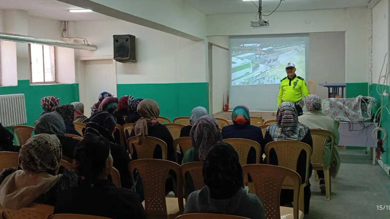 Bu çerçevede Kıdemli Başpolis Ahmet Kahraman, velilerle bir araya gelerek trafikte uyulması gereken konularla ilgili bilgiler verdi.