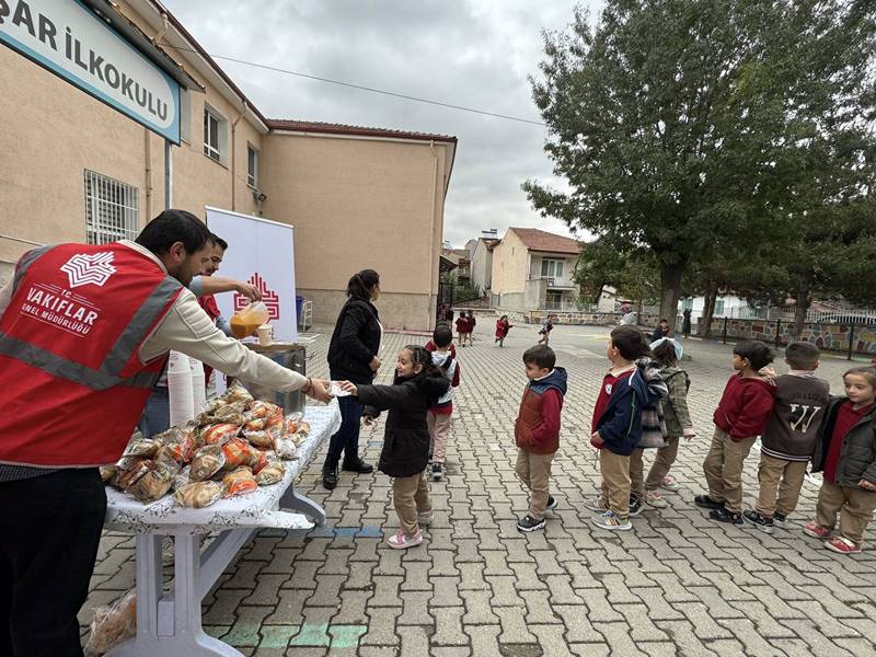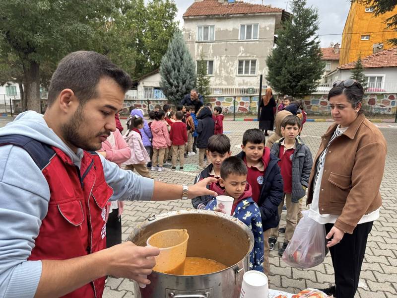 Bu kapsamda Kütahya Vakıflar Bölge Müdürlüğü ekipleri, Şehit Uzman Çavuş Hasan Yaşar İlkokulu’nda eğitim gören öğrencilere sıcak vakıf çorbası ikram etti.