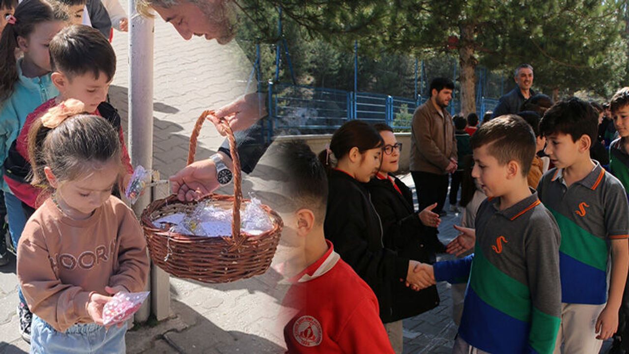 Bu kapsamda Şehitler ortaokulunda öğrenciler okul bahçesinde tek tek bayramlaştı, hazırlanan bayramlıklarını aldı.