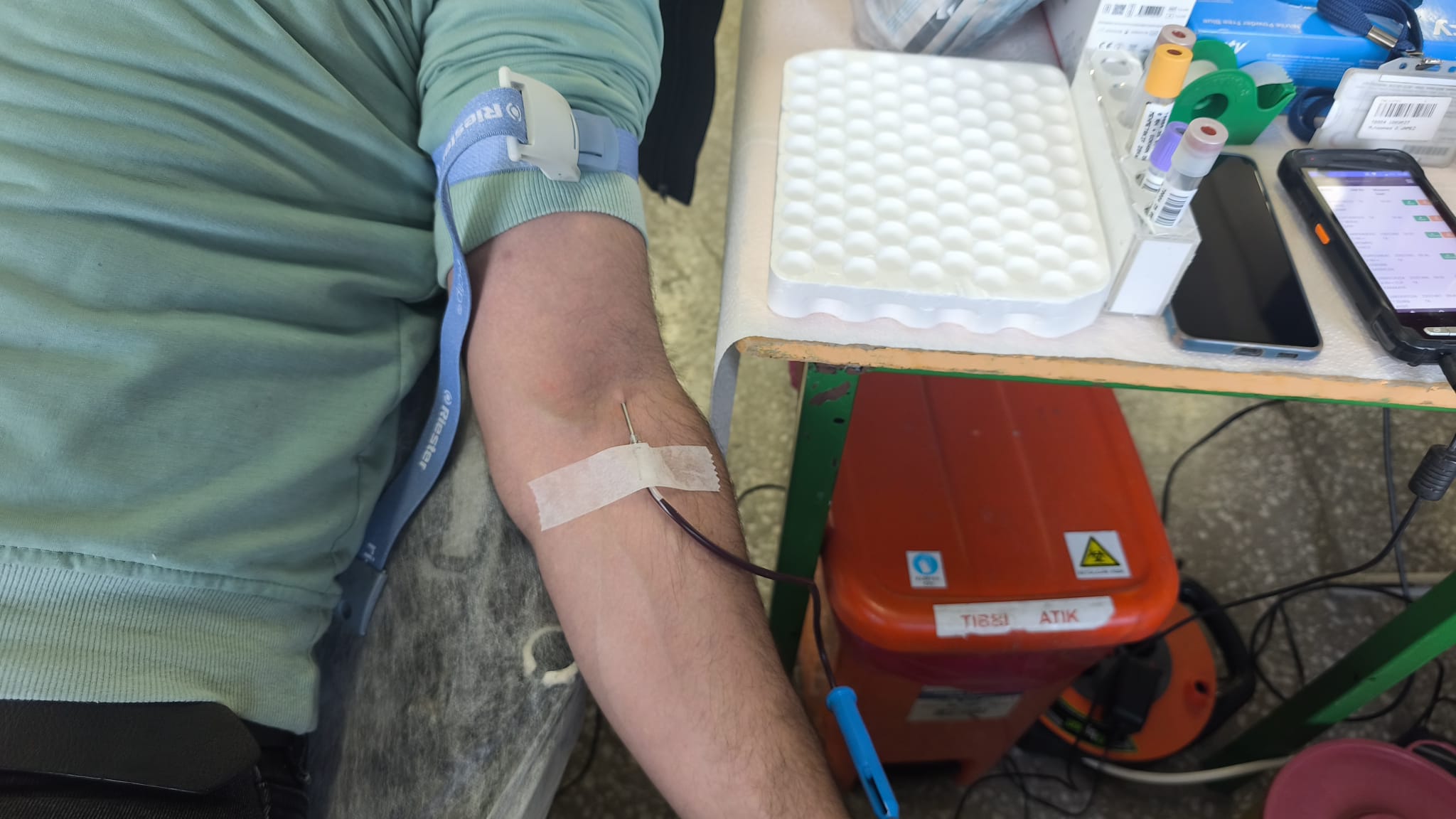 Türk Kızılay kan bağış aracında görevliler, kan bağışında bulunmak isteyen vatandaşların değerlerini kontrol etti, evrakların doldurulmasını sağladı.
