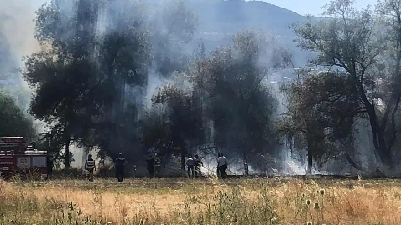 İtfaiye ekipleri ot yangını büyümeden kontrol altına alarak soğutma çalışması gerçekleştirdi.