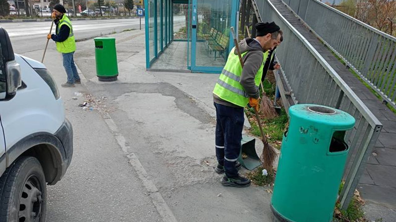 Belediye Temizlik İşleri Müdürlüğü ekipleri tarafından yürütülen çalışmada, durak içleri ve çevresinde biriken çöpler, yapraklar ve atıklar temizlenerek kullanım alanları düzenlendi.