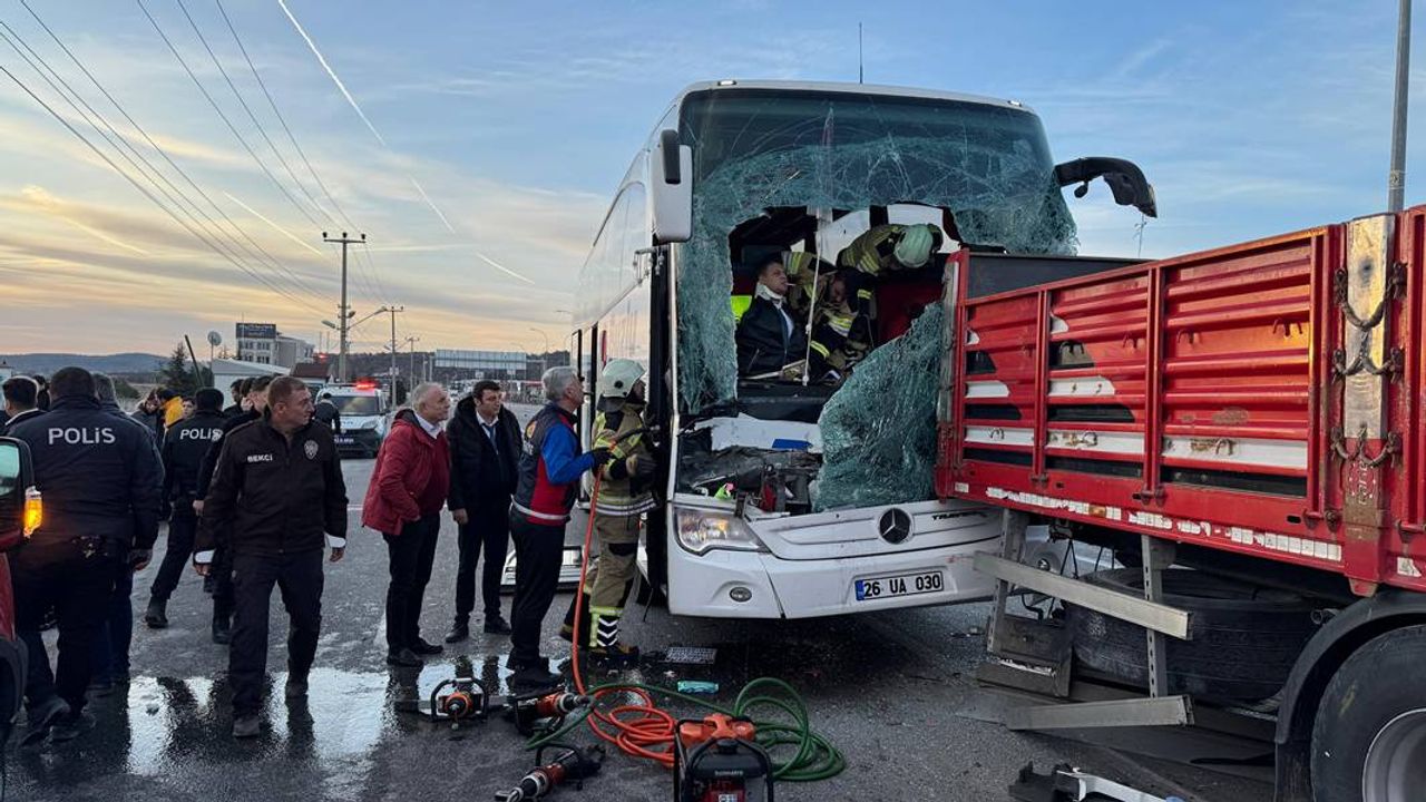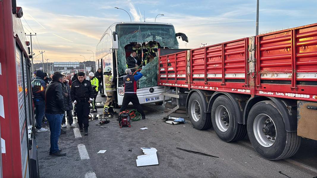 Kütahya'da yolcu otobüsünün tıra arkadan çarpması sonucu meydana gelen trafik kazasında, ilk belirlemelere göre 14 kişi yaralandı.