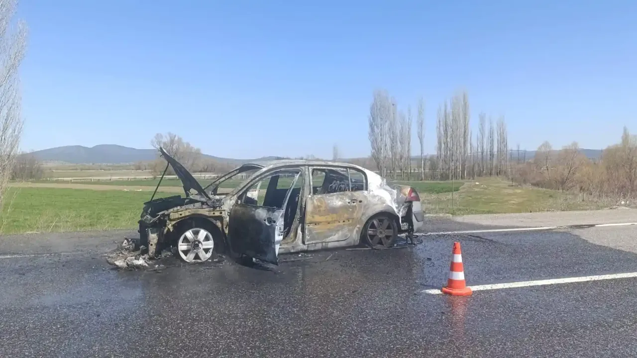 Kütahya’da seyir halindeyken yanan otomobil, itfaiye ekiplerince söndürüldü.
