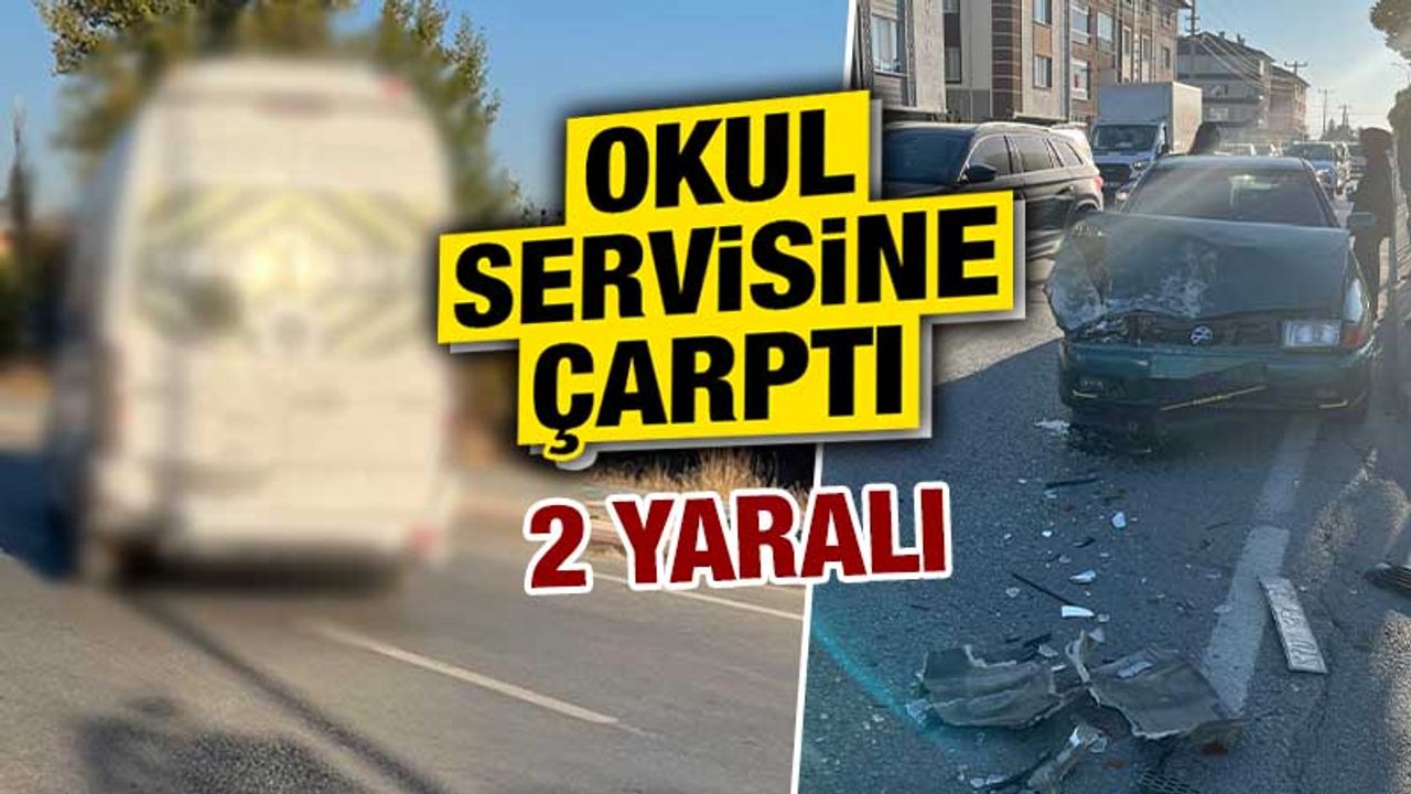 Kütahya’da bir otomobil önünde ilerleyen okul servis minibüsüne çarpması sonucu 2 kişi yaralandı.