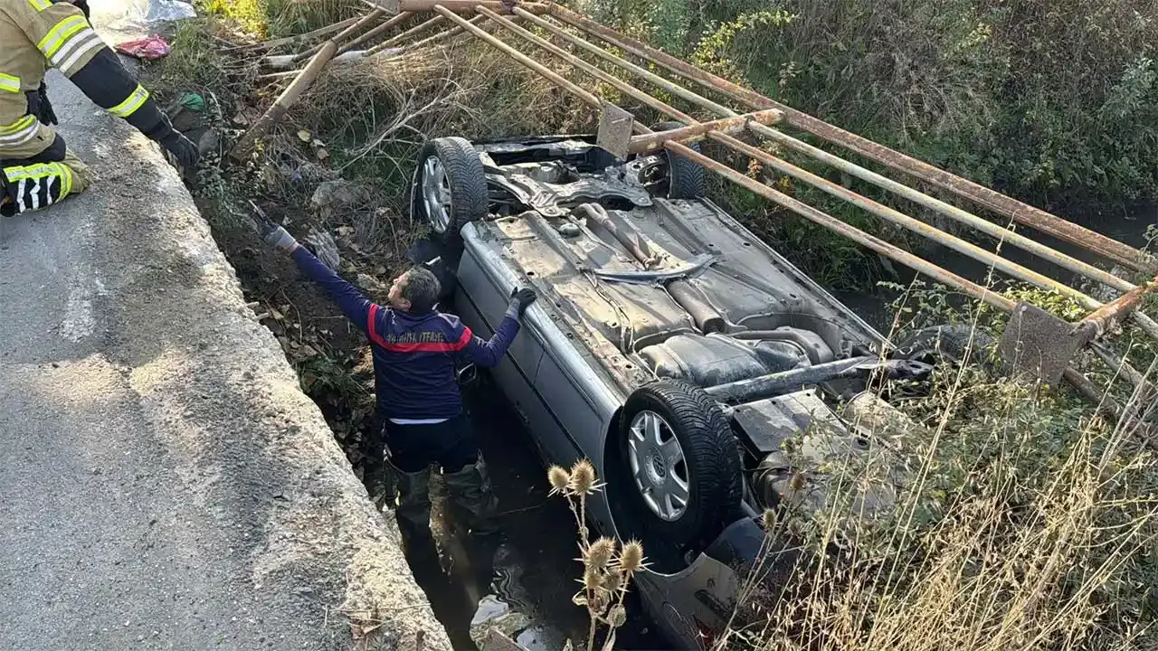 Ersin C. idaresindeki 06 BTP 331 plakalı otomobil, kontrolden çıkarak hemzemin geçit yanında bulunan sulama kanalına devrildi.