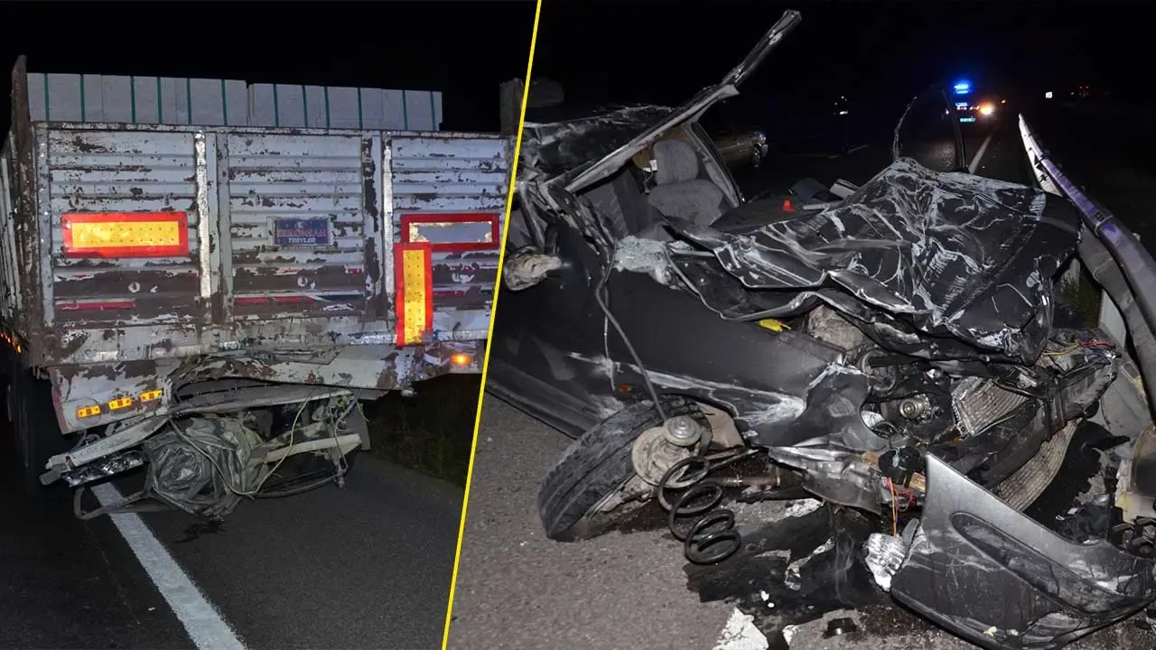 İbrahim Aras'ın kullandığı 43 UZ 883 plakalı otomobil, aynı yönde seyreden Ahmet İ. idaresindeki 54 SH 480 plakalı tıra arkadan çarptı.