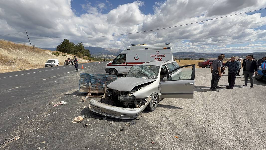 Alınan bilgiye göre, G.A. (44) idaresindeki 43 EB 509 plakalı otomobil, Domaniç-Tavşanlı kara yolu Çokköy mevkisinde önüne çıkan B.S.'nin (78) kullandığı 43 YC 268 plakalı traktörle çarpıştı.