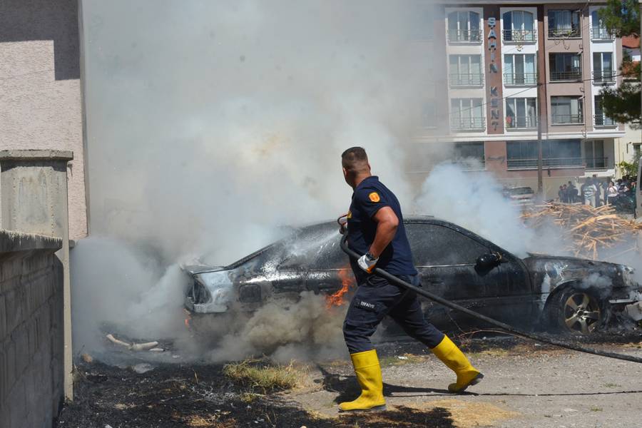 Otomobilin sahibi ve plakası henüz öğrenilemezken, yangının çıkış nedeni araştırılıyor.