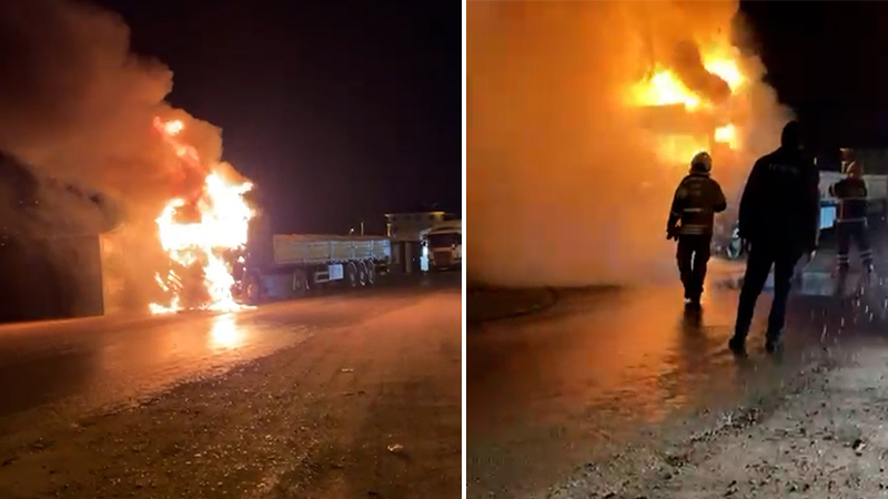 Yangının, tırın elektrik sisteminden çıktığı ihtimali üzerinde duruluyor.