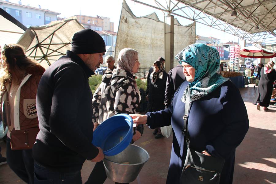 Metehan ile birlikte pazarda esnafı dolaşan Başkan Akdaş, esnaftan yardım topladı.