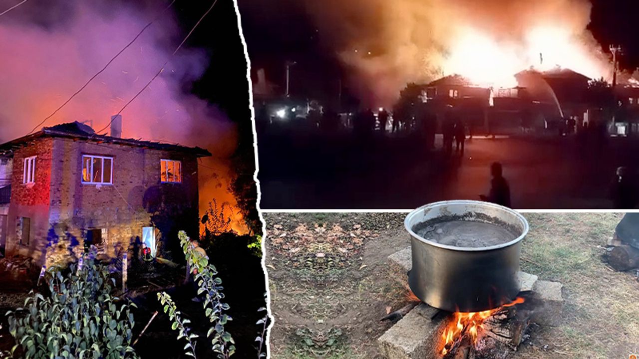 Kütahya’nın Şaphane ilçesinde üzüm pekmezi kaynatmak için yakılan ateşten çıktığı tahmin edilen yangında, bir mahalledeki 3 ev yanarak kullanılamaz hale geldi.