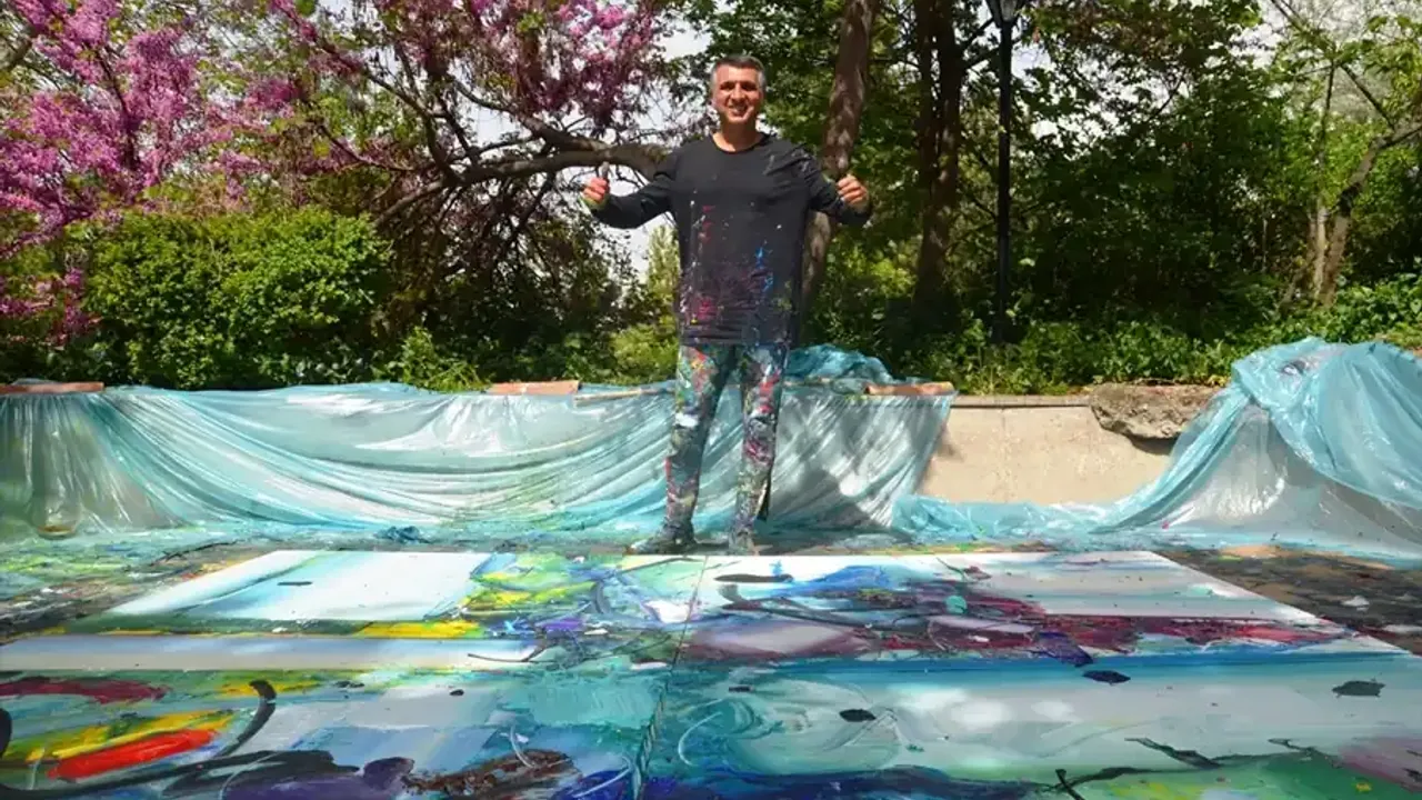 Cebrailoğlu, dünyaca ünlü Kütahyalı ressam, neyzen Ahmet Yakupoğlu’nun Maltepe Mahallesi’ndeki evinin önünde oluşturulan platformda müzik eşliğinde soyut resim yaptı.