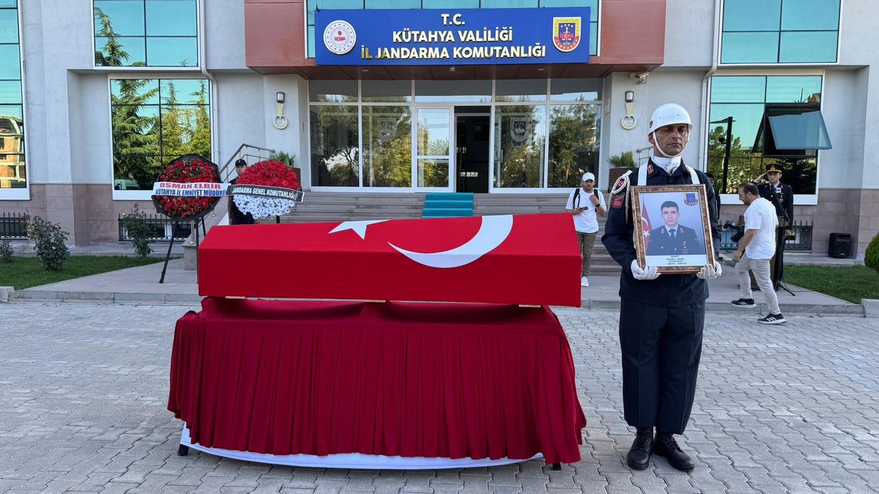 Şehit Yeşil'in (26) Türk bayrağına sarılı naaşı, hastane morgundan alınarak Kütahya İl Jandarma Komutanlığı hizmet binasının önüne getirildi.