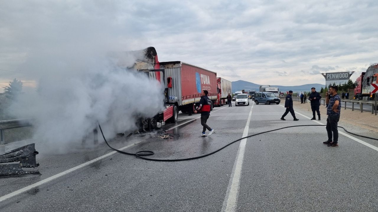 Yangını fark eden tır şoförü, su yüklü dorseyi çekiciden ayırarak durumu 112 Acil Çağrı Merkezi'ne bildirdi. İhbar üzerine olay yerine itfaiye, jandarma ve polis ekipleri sevk edildi.