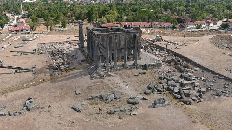 Milattan sonra 92 civarında İmparator Domitianus döneminde inşasına başlanan tapınağın milattan sonra 2. yüzyılın ilk yarısında Hadrianus döneminde tamamlandığını hatırlatan Coşkun, tapınağın Roma döneminden sonra Bizans döneminde kiliseye dönüştürüldüğünü, sonrasında da milattan sonra 13. yüzyılda bölgeye yerleşen Çavdar Tatarları'nın burayı bir tür kale olarak kullandığını kaydetti.