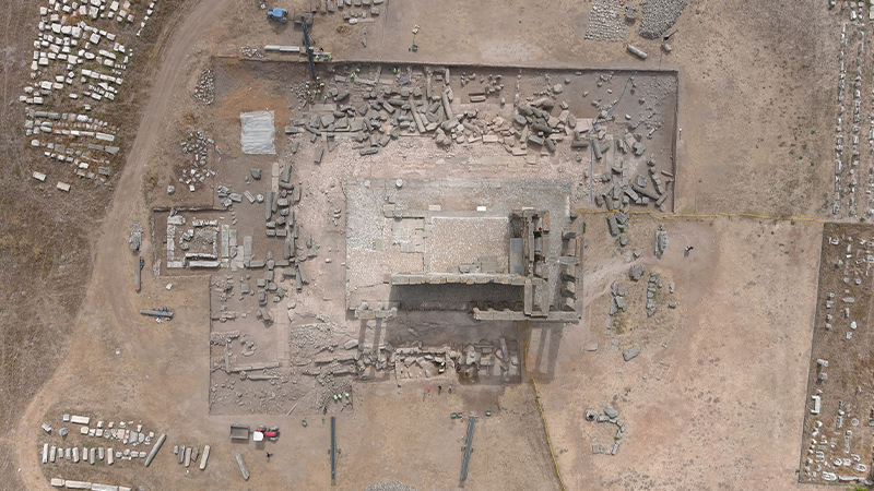 Coşkun, tapınağın avlusunun tamamen mermer döşemelerle kaplı olduğunu belirledikleri bilgisini vererek, bu mermer döşemelerin tapınak etrafındaki bazı alanlarda çok iyi korunarak bugüne kadar ulaşabildiğini tespit ettiklerini ve gün yüzüne çıkardıklarını dile getirdi.