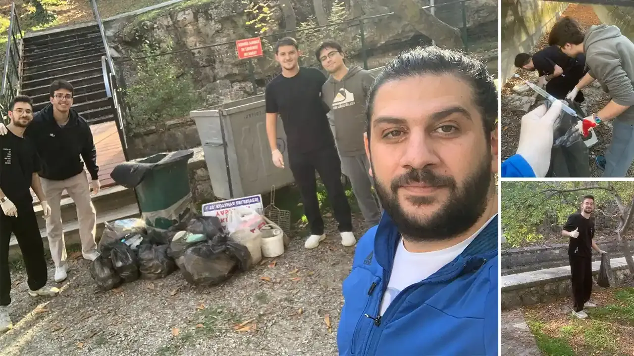 Kütahya Sağlık Bilimleri Üniversitesi (KSBÜ) Tıp Fakültesi öğrencileri, çevre temizliği farkındalığı için ameliyat eldivenlerini giydi, mesire alanlarını temizledi.