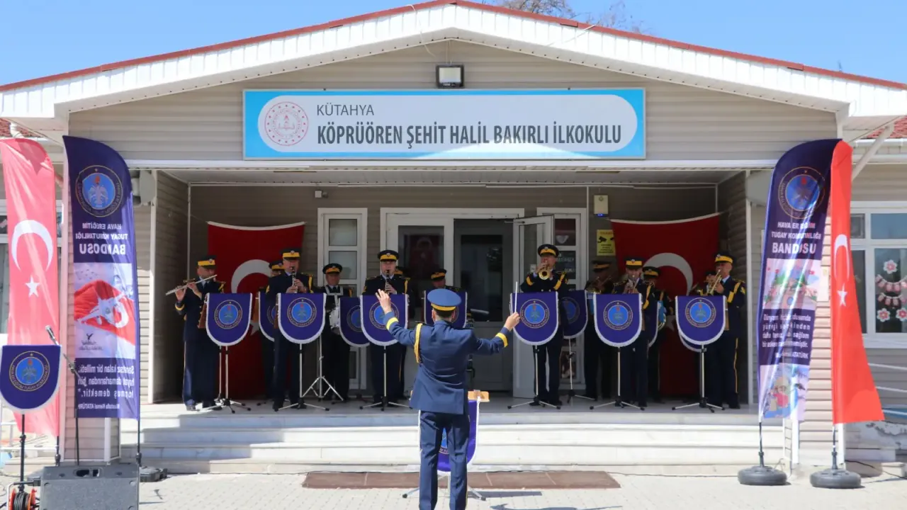 Bu çerçevede Kütahya Hava Er Eğitim Tugay Komutanlığı Bandosu, Köprüören köyündeki ilk ve orta okulunda öğrenciler ile bir araya geldi.