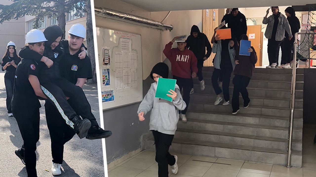 Milli Eğitim Bakanlığı ile Afet ve Acil Durum Başkanlığı işbirliğiyle ülke genelinde eş zamanlı tüm okullarda deprem tatbikatı düzenlendi.