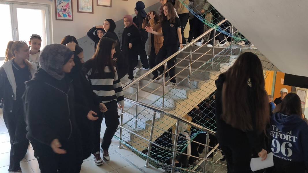 Daha önce öğrenciler sırayla sınıflarını terk ederek, okul bahçesindeki toplanma alanında toplandı.