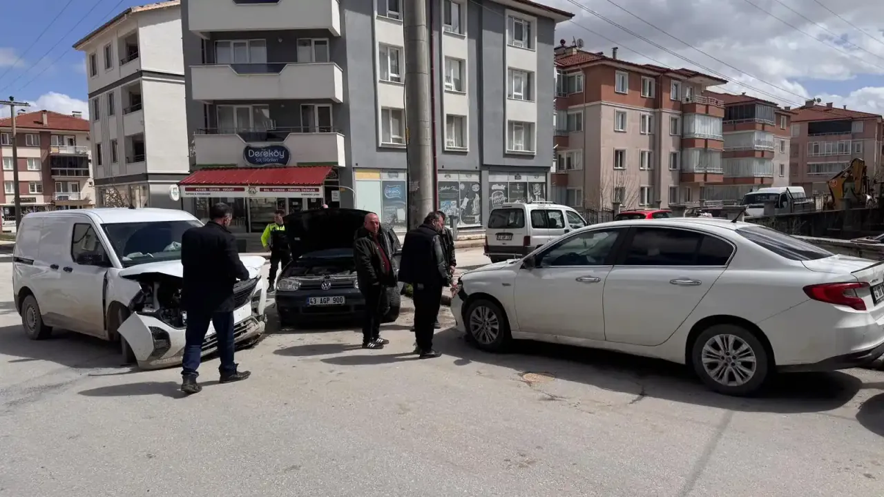 Kütahya’da üç aracın karıştığı trafik kazasında yaralanan olmazken, araçlarda maddi hasar meydana geldi.