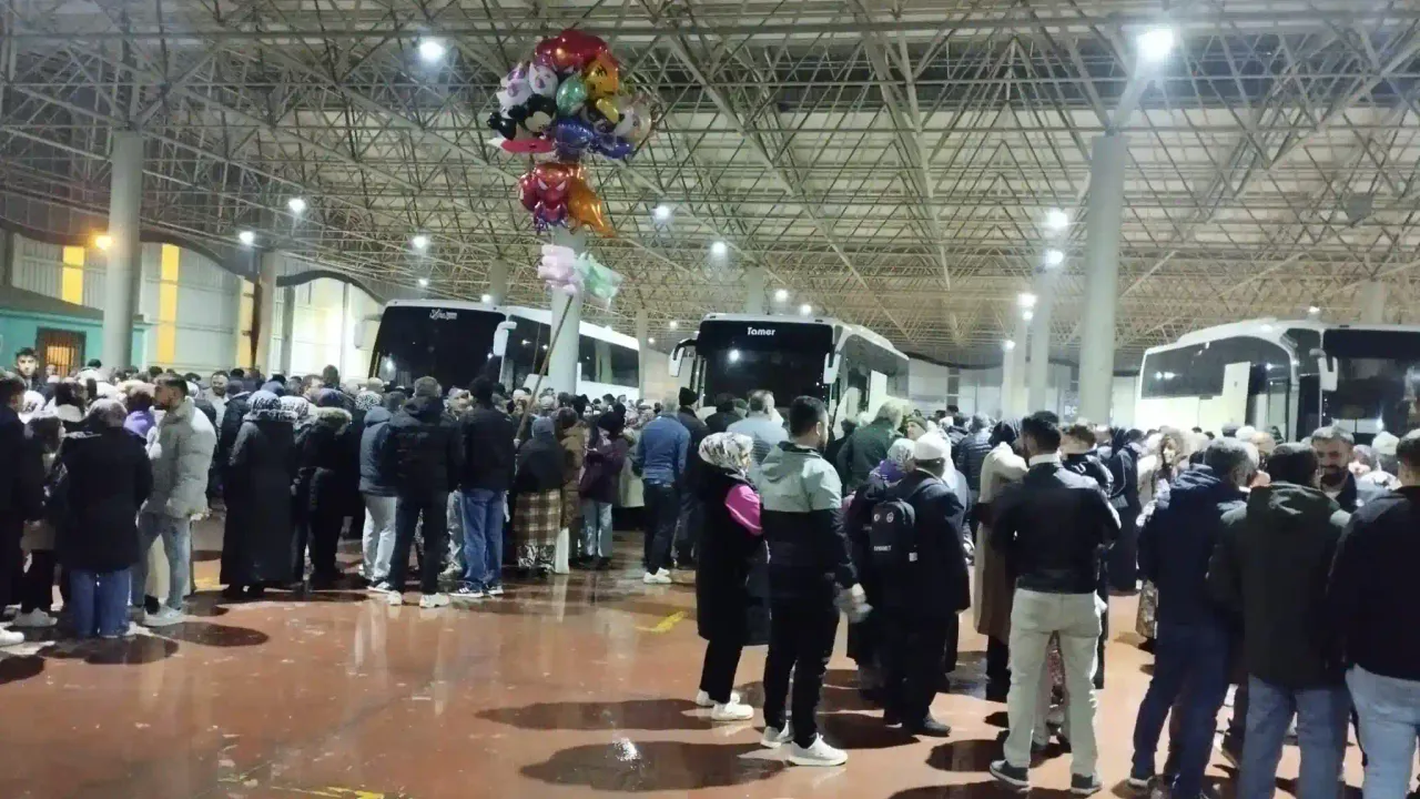 Saat 1’de semt pazarından havalimanına giden tur otobüsleri, yapılan dualarla uğurlanırken, aileler de eşlik etti.
