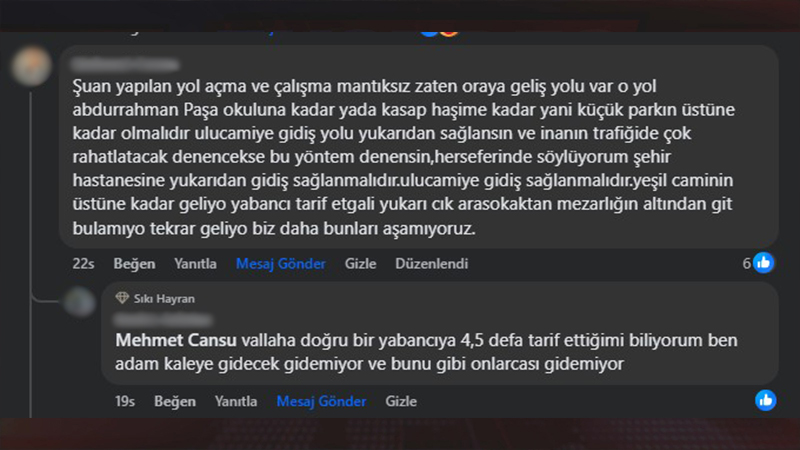 Kütahya Belediyesi’nin yaptığı diğer çalışmalarla ilgili eleştirilerde bulunan bir vatandaş ise, “Şu an yapılan yol açma ve çalışma mantıksız, zaten oraya geliş yolu var. Abdurrahman Paşa okuluna kadar ya da kasap haşime kadar yani küçük parkın üstüne kadar olmalıdır. Ulu Cami’ye gidiş yolu yukarıdan sağlansın ve inanın trafiğide çok rahatalatacak. Denenecekse bu yöntem denensin, her seferinde söylüyorum Şehir Hastanesi’ne yukarıdan gidiş sağlanmalıdır. Ulu Cami’ye gidiş sağlanmalıdır. Yeşil Cami’nin üstüne kadar geliyor, yabancılar gelince tarif ediyoruz, sonra yine geliyorlar ve bulamadıklarını söylüyorlar.” ifadelerini kullandı.