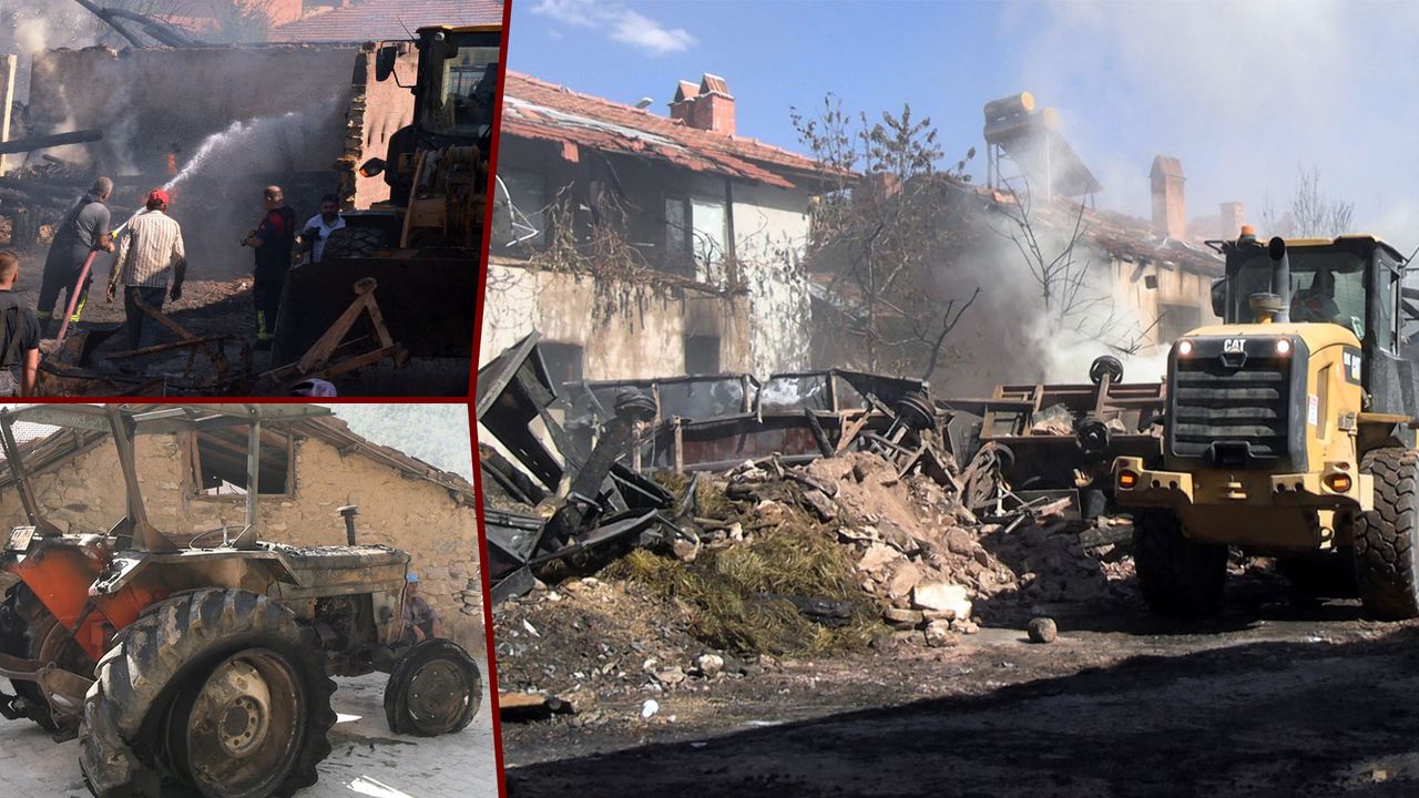 Ekiplerin yaklaşık 2 saatlik çalışmasıyla söndürülen yangında 3 ev, 2 traktör, 1 otomobil ile tarım aletleri kullanılamaz hale geldi.