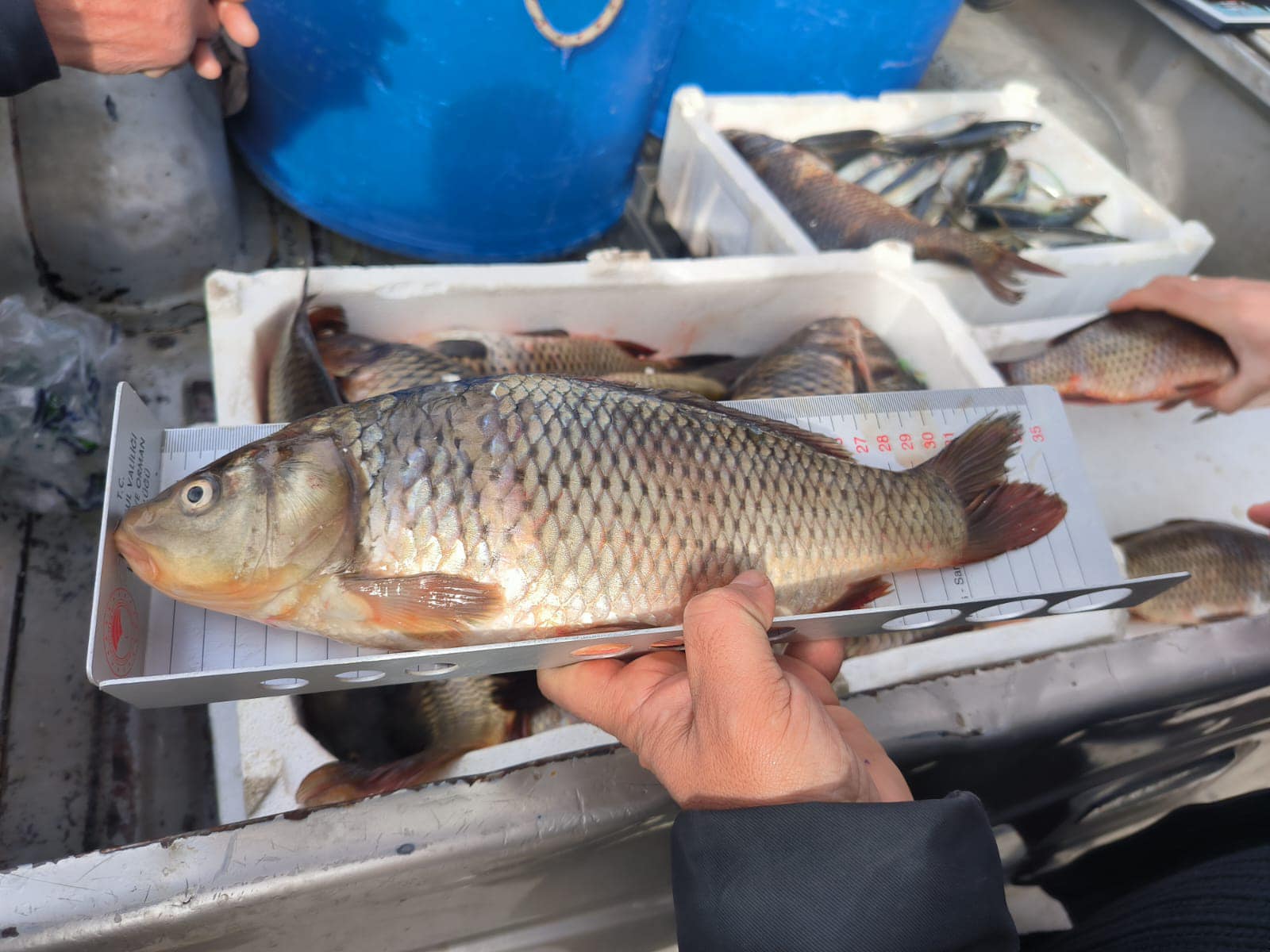 Denetimler sırasında asgari avlanma boyutunun altında olduğu belirlenen 10 kilogram sazan balığına el konuldu.
