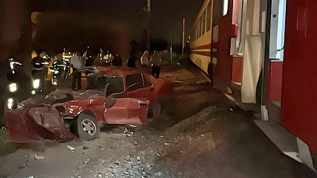 Kütahya’da yolcu treni, demir yolunda bırakılan otomobile çarptı.