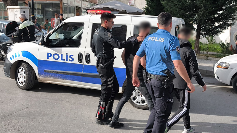 İhtara uymayarak kaçan şüpheliler, kısa süren kovalamacanın ardından Meydan Kavşağı'nda yakalandı.