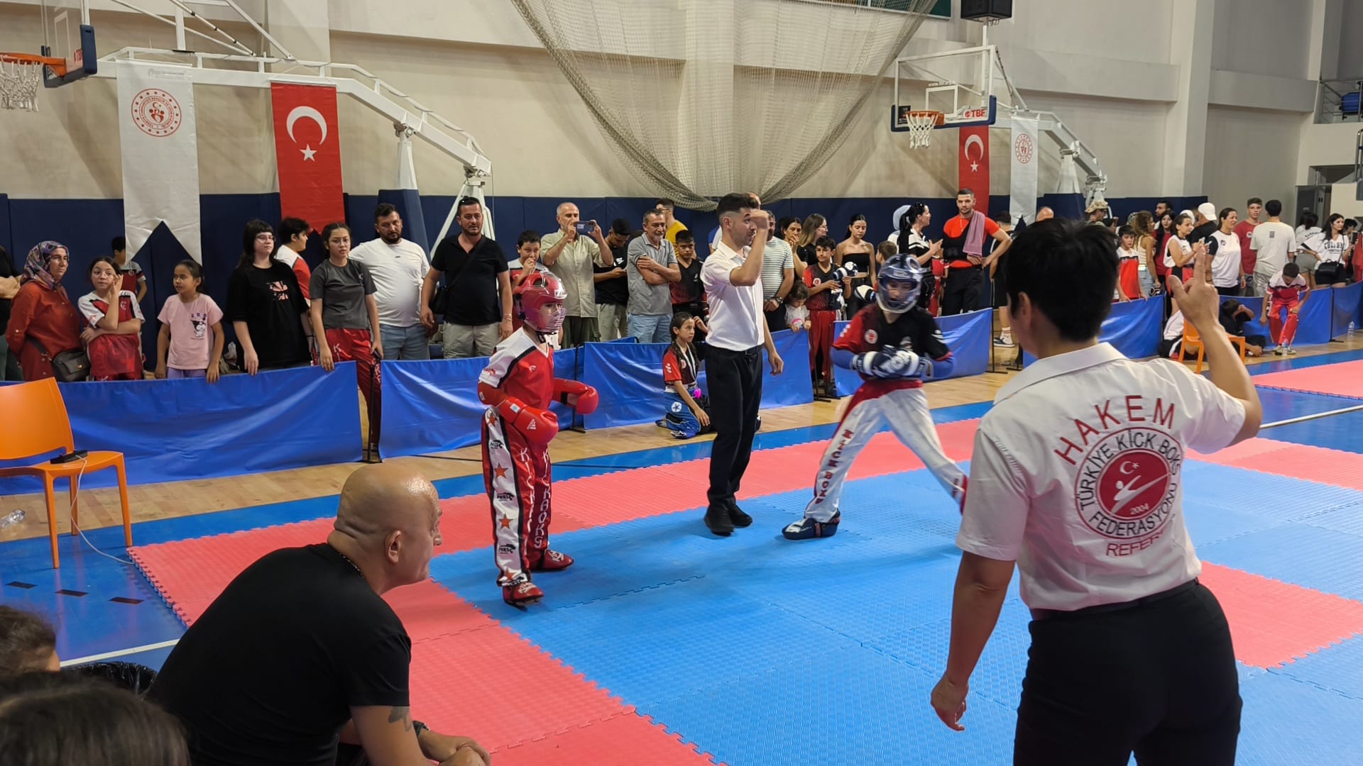 Yeni Spor Salonu’ndaki turnuvaya katılan sporcular, derece elde edebilmek için ter döktü.