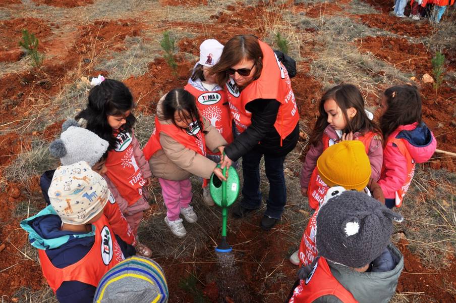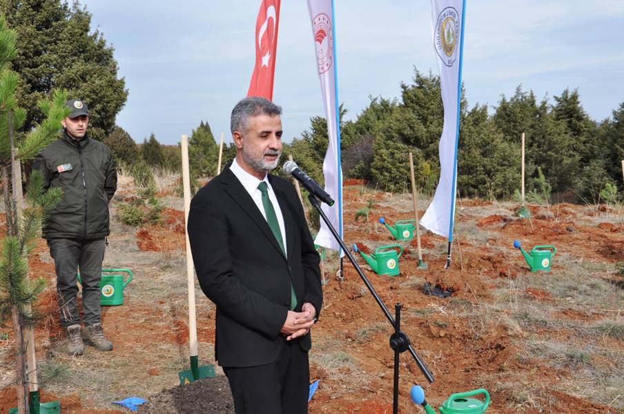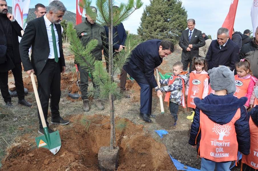 Konuşmanın ardından Vali Musa Işın ve diğer protokol üyeleri ile öğrenciler çam fidanlarını dikerek can suyu verdi.