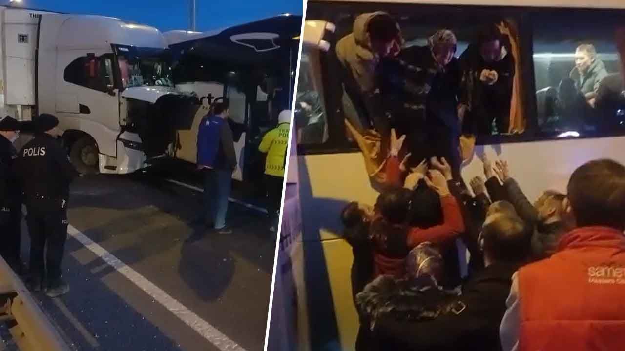 Kütahya - Afyonkarahisar çevre yolundaki Akşemsettin Kavşağı'ndaki üst geçitte işçi servisi, yolcu otobüsü ve tır çarpıştı.