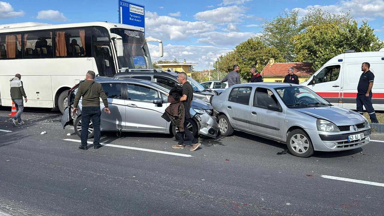 Kütahya-Afyonkarahisar çevre yolu Tren Garı Kavşağı yakınında 43 S 0136 plakalı işçi servisi 1 tır ile 4 otomobile çartı.