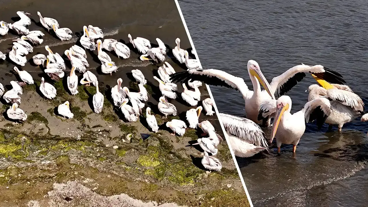 Ankara, Eskişehir, Afyonkarahisar ve Kütahya'da geniş bir alanı kapsayan Frig Vadisi'nde yer alan Porsuk Baraj Gölü'ne sürü halinde gelen pelikanlar, sığ sularda topluca avlanıyor.