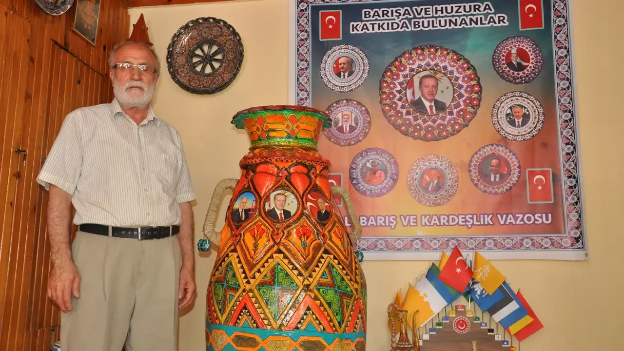 Vazonun “Milli barış ve kardeşlik” temasını yansıttığını anlatan Yıldız, dernek ve çini sanatçısı olarak sorumluluklarından birisinin de bu tür güzel işlere destek olmak olduğunu söyledi.